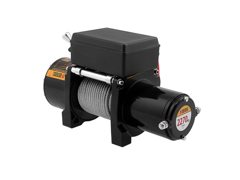 Автомобильная электрическая лебедка Denzel LB-2200 52022 мощностью 3,3 кВт работает от бортовой сети напряжением 12 В и предназначена для перемещения транспортных средств массой до 2,2 т. Монтируется на раме (бампере) автомобиля, незаменима в поездках, т.к. с ее помощью можно легко освободить застрявшее авто, квадроцикл и другую технику.