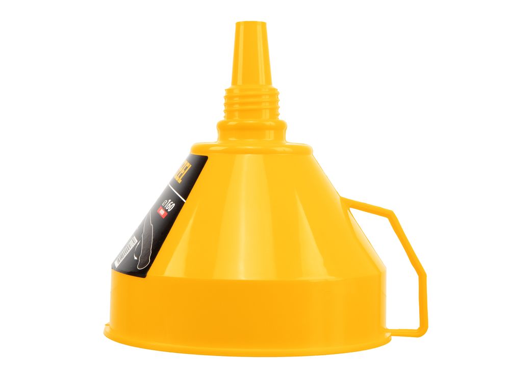 Пластиковая воронка Denzel 537206 диаметром 160 мм, с металлическим сетчатым фильтром и гибким наконечником, позволяет переливать топливо, антифриз, масло и другие горюче-смазочные материалы. Будет полезна автовладельцам: с ее помощью процедура происходит гораздо быстрее и без риска испачкаться. Воронка выполнена из маслобензостойкого материала.