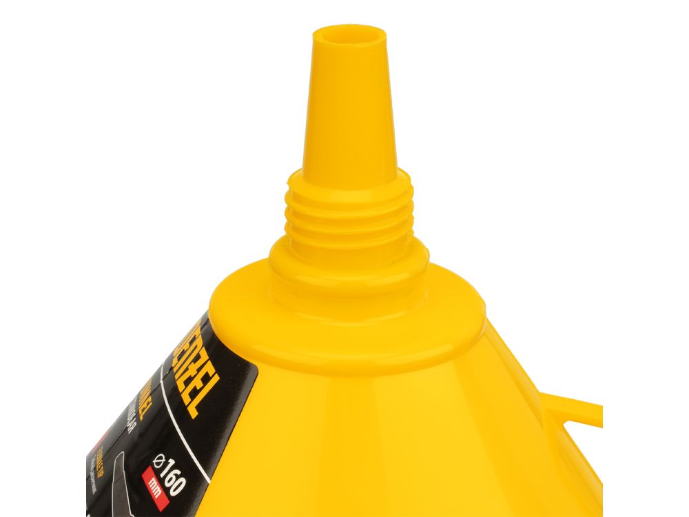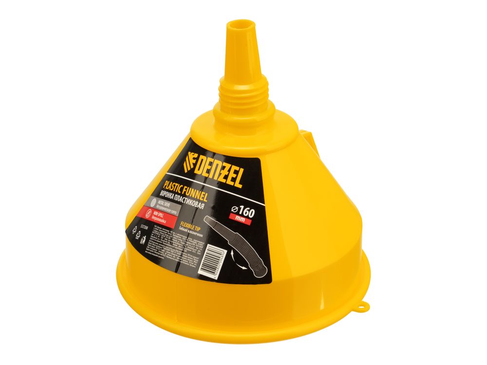 Пластиковая воронка Denzel 537208 диаметром 160 мм, с металлическим сетчатым фильтром, «непроливайкой» и гибким наконечником, позволяет переливать топливо, антифриз, масло и другие горюче-смазочные материалы. Будет полезна автовладельцам: с ее помощью процедура происходит гораздо быстрее и без риска испачкаться. Воронка выполнена из маслобензостойкого материала.