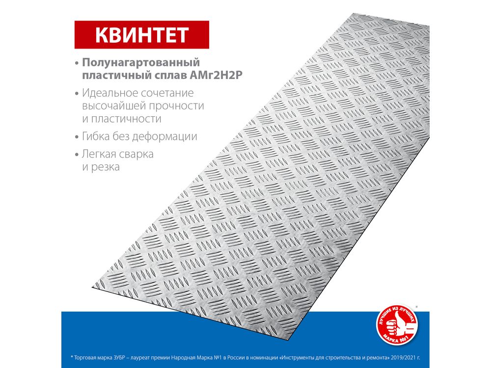 Алюминиевый рифленый лист ЗУБР Квинтет 300х1200 х1.5 мм