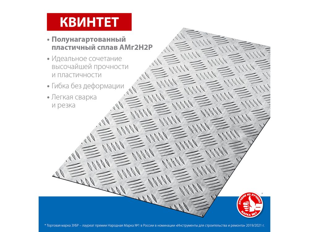 Алюминиевый рифленый лист ЗУБР Квинтет 300х600 х1.5 мм