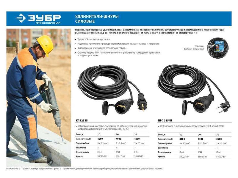 Удлинитель-шнур предназначен для подключения электрических приборов, которые находится на удалении от основного источника сети. Провод КГ (резиновая изоляция) устойчив к низким температурам до -40°С, к агрессивным средам, к деформациям и ударам. Позволяет выполнять работы в любое время года.