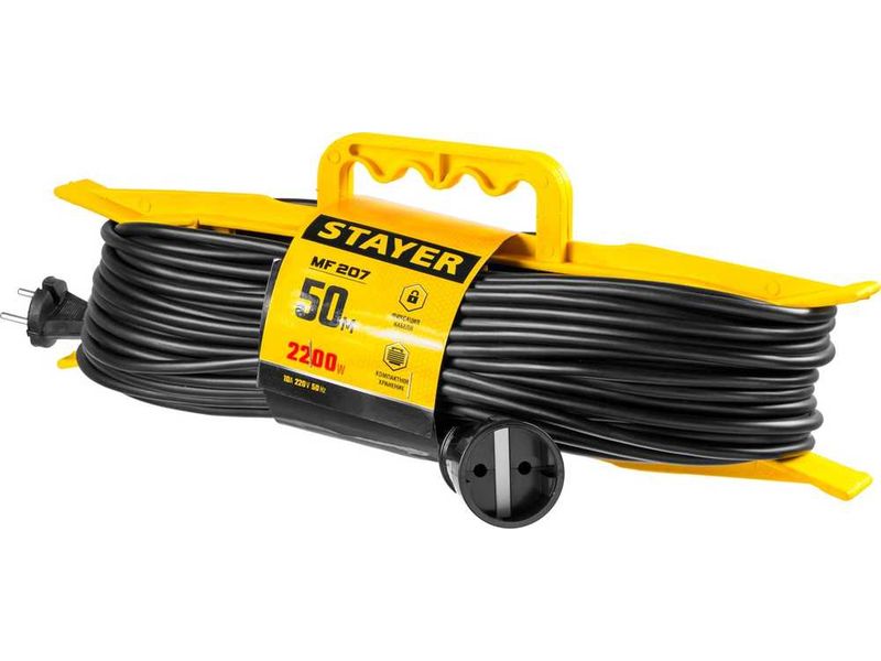 Удлинитель на рамке MF 207, 50 м, 2200 Вт, 1 гнездо, ПВС 2х0,75 мм2, STAYER