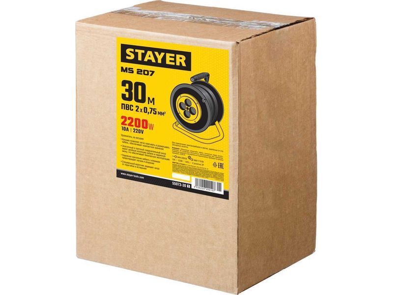 Купить Удлинитель на катушке MS 207, 30 м, 2200 Вт, 4 гнезда, ПВС 2х0,75 мм2, STAYER