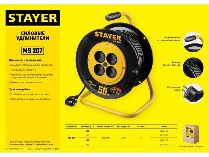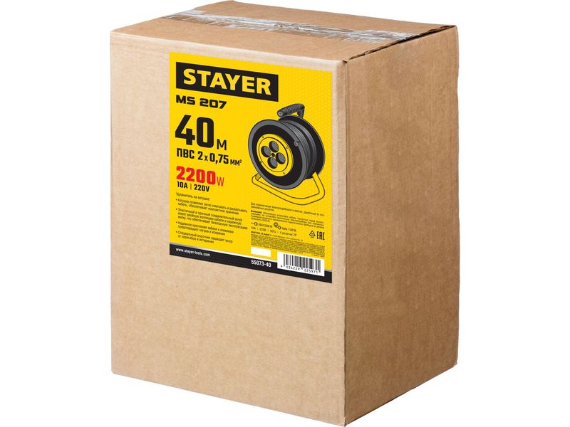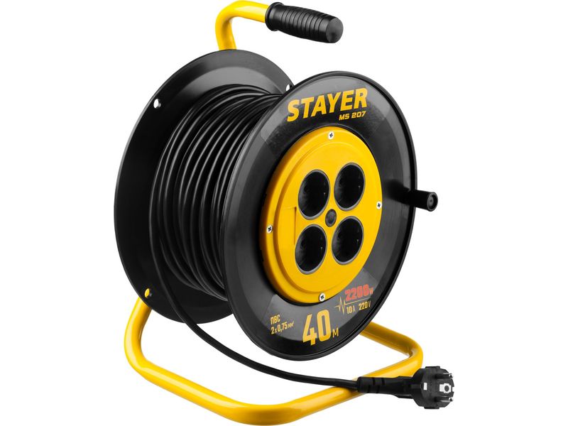 Удлинитель на катушке MS 207, 40 м, 2200 Вт, 4 гнезда, ПВС 2x0,75 мм2, STAYER-684