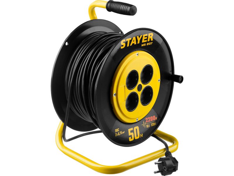 Купить Удлинитель на катушке MS 207, 50 м, 2200 Вт, 4 гнезда, ПВС 2x0,75 мм2, STAYER