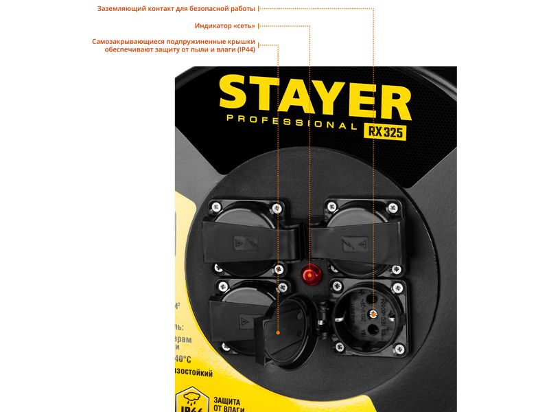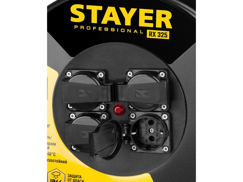 Купить Удлинитель на катушке RX 325, 30 м, 4000 Вт, 4 гнезда, IP44, КГ 3x2,5 кв мм, STAYER