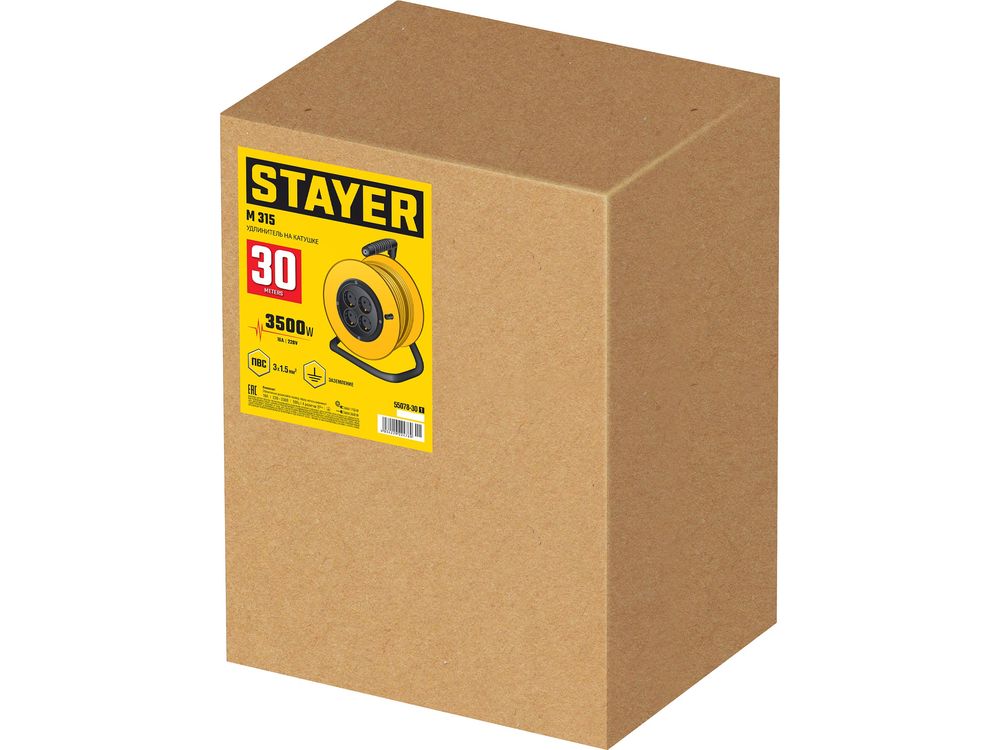 STAYER M-315, ПВС, 3 x 1.5 мм2, 30 м, 3500 Вт, силовой удлинитель на катушке (55078-30)