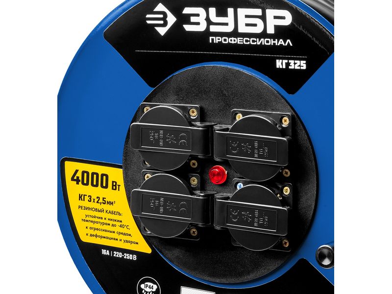 Купить Удлинитель на катушке КГ 325, 20 м, 4000 Вт, 4 гнезда, IP44, КГ 3х2,5 кв мм, ЗУБР