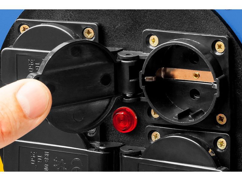 Катушка позволяет легко сматывать и разматывать кабель, обеспечивая мобильное перемещение и компактное хранение.
