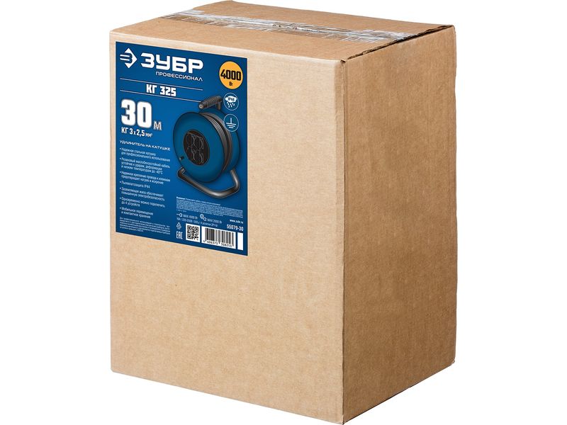 КГ 325 удлинитель на катушке, 30 м, 4000 Вт, 4 гнезда, IP44, КГ 3х2,5 кв мм, ЗУБР ПрофессионалЭлектротехнические изделия ЗУБР созданы на основе современных материалов и технологий. Благодаря соблюдению высоких стандартов качества, наша продукция обеспечит надежную работу на протяжении всего срока службы. Является незаменимым помощником, обеспечивая комфорт в работе и отличный результат. Технические характеристики и функции