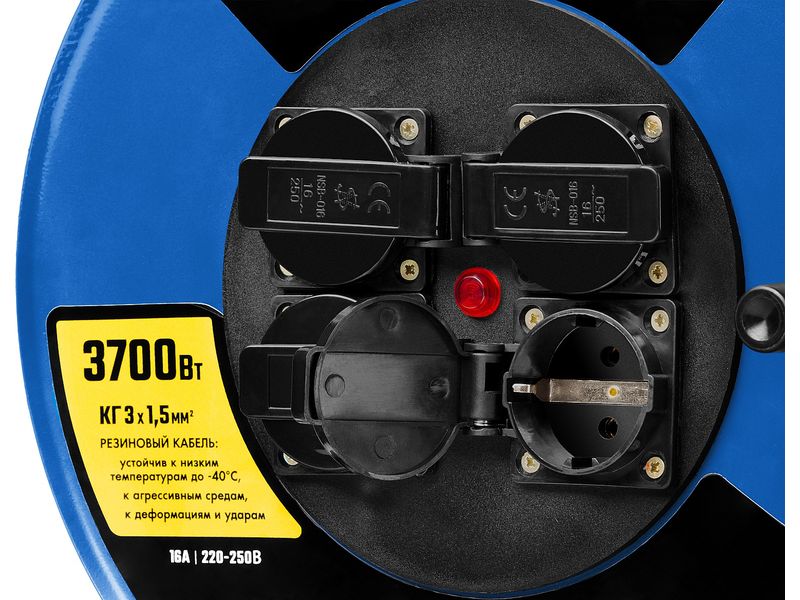 Удлинитель на катушке "КГ 315", 20 м, 3700 Вт, 4 гнезда, IP44, КГ 3х1,5 кв мм, ЗУБР