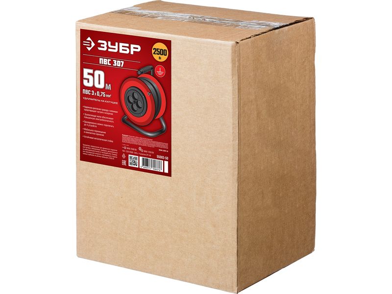 Купить Удлинитель на катушке ПВС 307, 50 м, 2500 Вт, 4 гнезда, ПВС 3х0,75 кв мм, ЗУБР