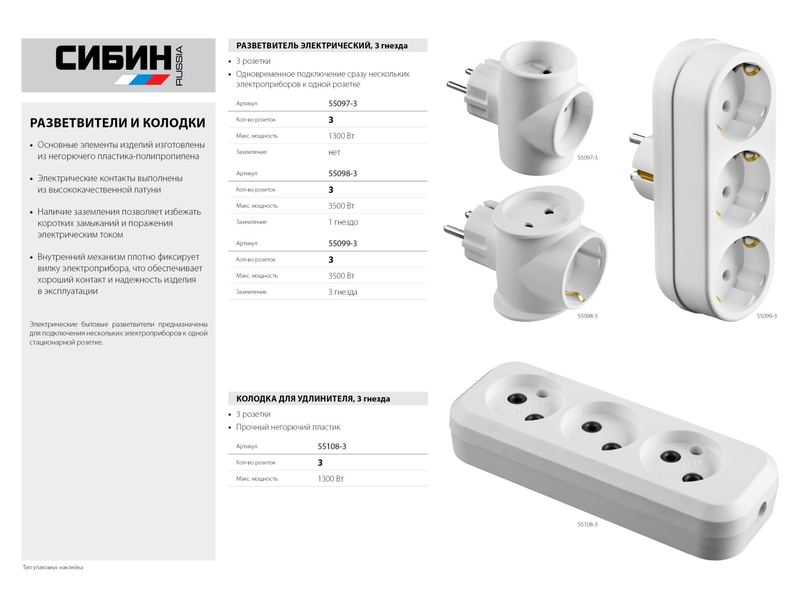 Предыдущий товар Разветвитель СИБИН электрический, 3 гнезда, 6А/220В