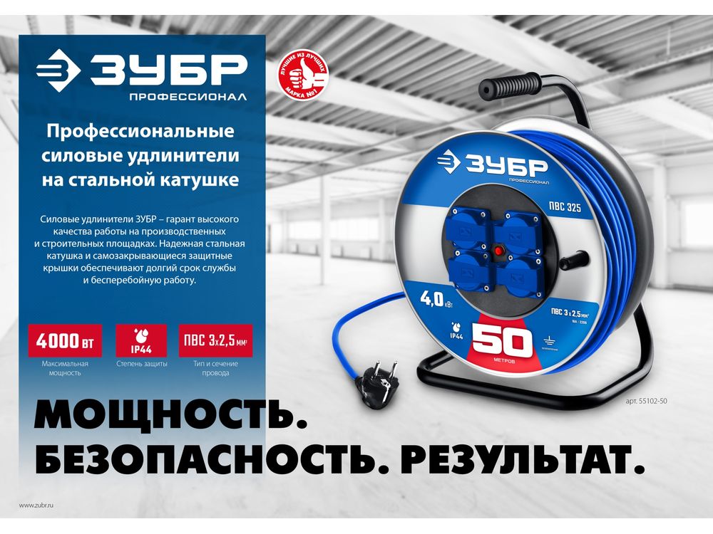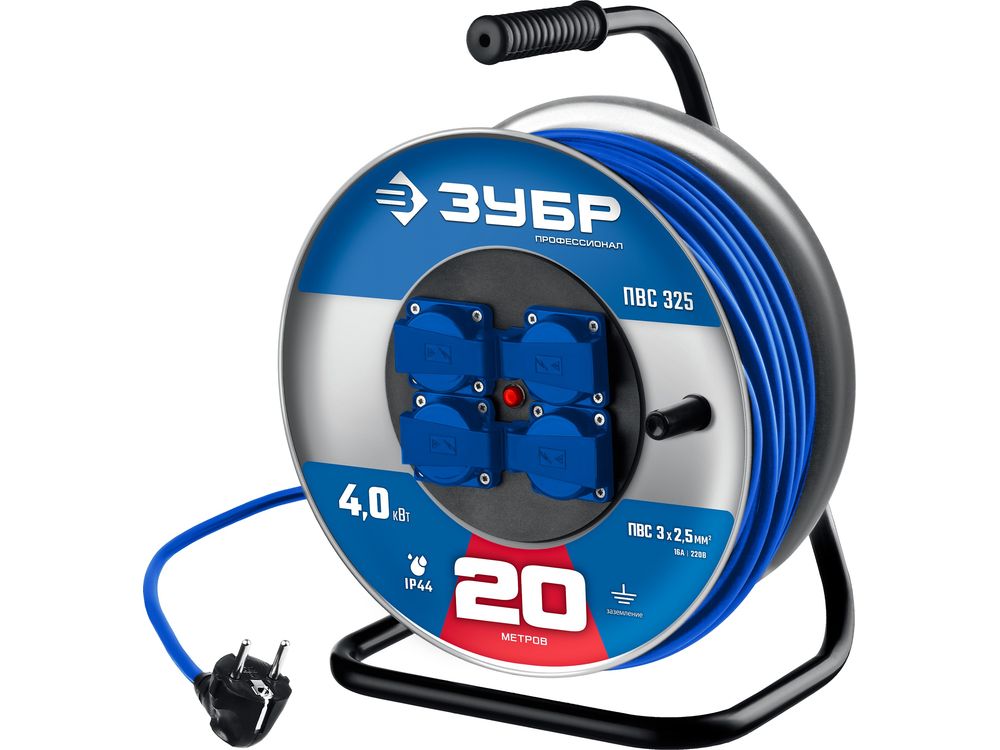 ЗУБР ПВС 325 ПВС 3х2.5 20м 4000Вт IP44, Силовой удлинитель на стальной катушке (55102-20)-684