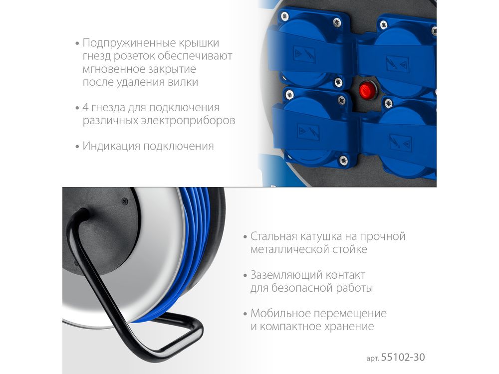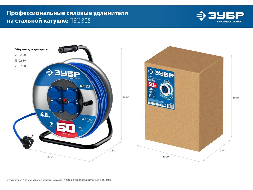 ЗУБР ПВС 325 ПВС 3х2.5 30м 4000Вт IP44, Силовой удлинитель на стальной катушке (55102-30)-684