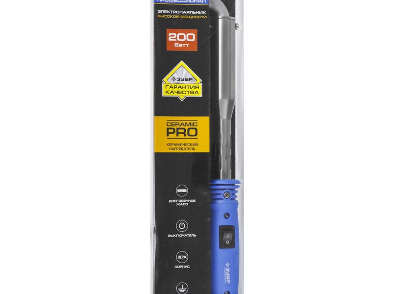 Купить Паяльник ЗУБР "ПРОФЕССИОНАЛ", с выключателем, пластмассовой рукояткой и долговечным жалом, 200Вт, клин