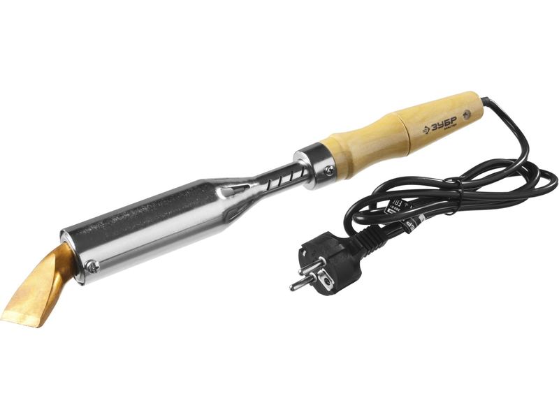 Паяльник ЗУБР "МАСТЕР", с выключателем, деревянной рукояткой и долговечным жалом, 300Вт, клин