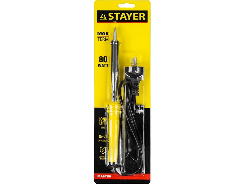 Паяльник STAYER MASTER с пластмассовой рукояткой и долговечным жалом, 80 Вт, клин