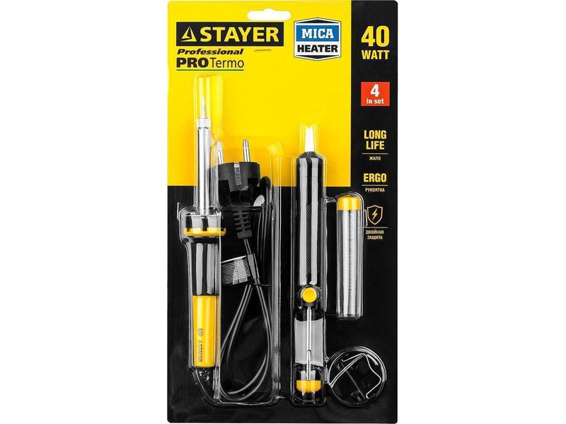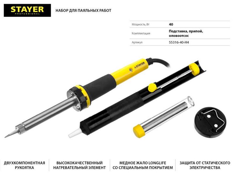 Набор STAYER "PROFI" для паяльных работ, 55300 +шприц + подставка + припой, 40 Вт