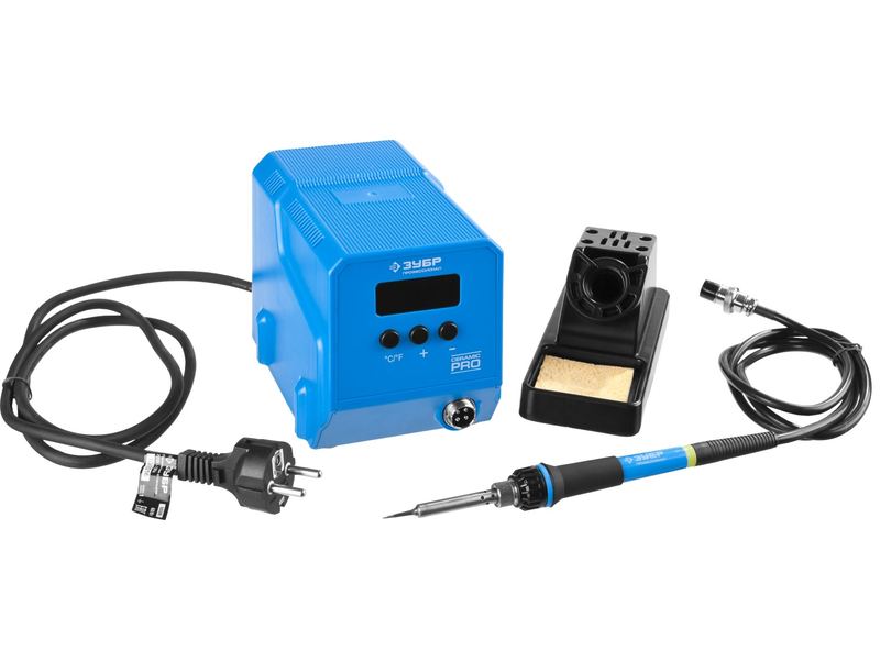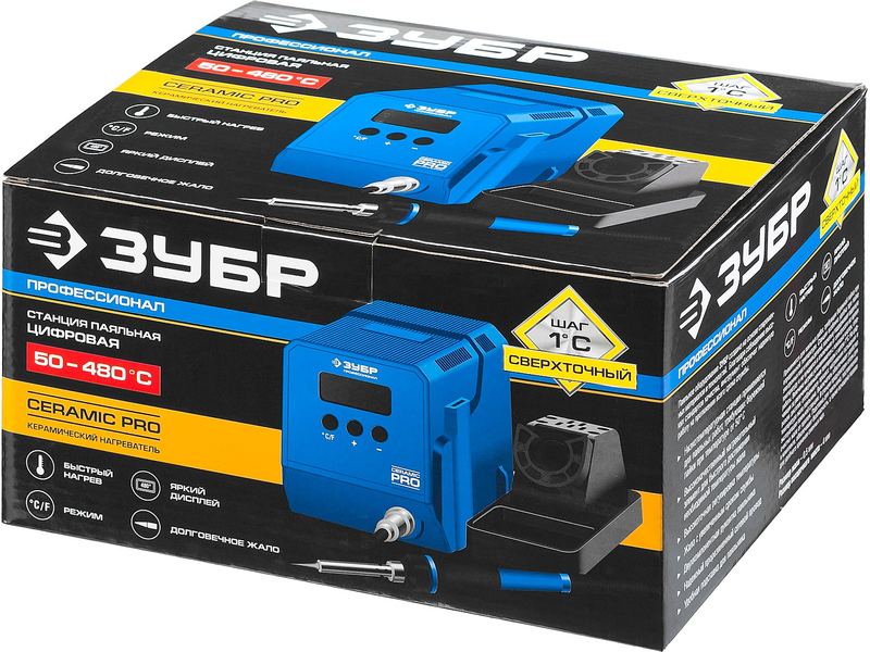 Паяльная станция ЗУБР "ПРОФЕССИОНАЛ" низкотемпературная цифровая с ЖК дисплеем, керамический нагреватель, диапазон 50-480°C, 60Вт