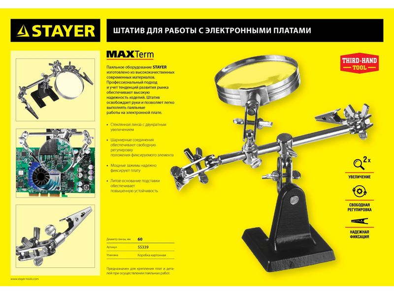 Купить Штатив STAYER MASTER для фиксации электронной платы, c увеличительной линзой