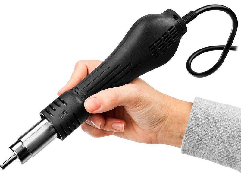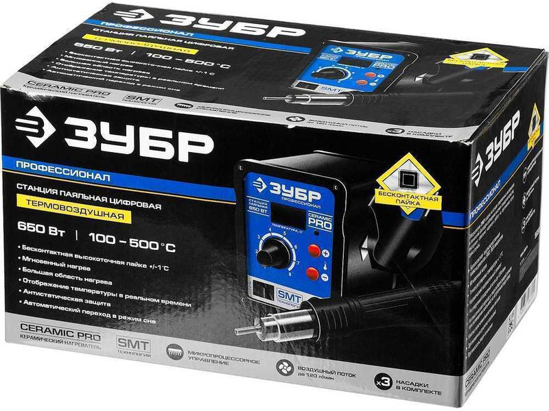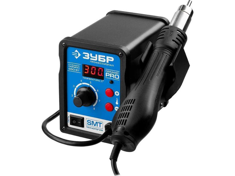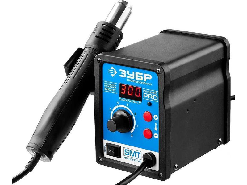 Применяется для демонтажа и пайки различных видов компонентов в корпусах, таких, как SOIC, PLCC, QFP, BGA используемых при технологии поверхностного монтажа. Технология поверхностного монтажа (или SMT технология) является наиболее распространённым на сегодняшний день методом сборки электронных узлов на печатных платах. Станция сочетает в себе современный дизайн и компактный размер, что позволяет экономить рабочее пространство. Замкнутая система датчиков, микроконтроллер для цифрового отображения данных и контроля температуры, большая стартовая мощность, быстрый разогрев от 3х до 5ти секунд, стабильность выбранной температуры. Уникальная функция неактивного состояния позволяет экономить энергию. Когда паяльник кладется на держатель, система приводится в резервное состояние готовности. Как только фен снимается с держателя, система возвращается к установленным настройкам. Уникальная система охлаждения. Продолжительный продув воздухом после выключения прибора продлевает срок его эксплу