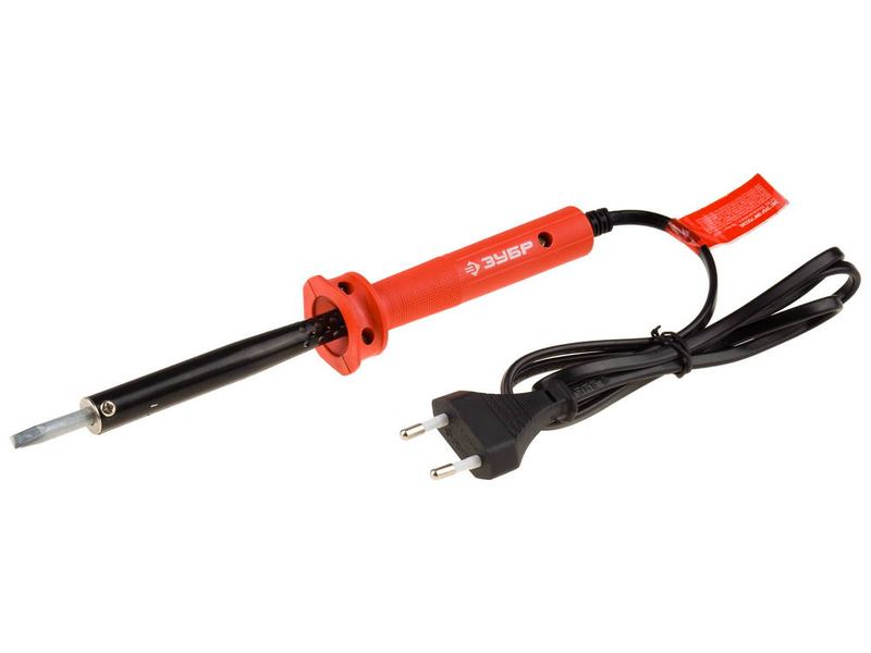 Электропаяльник ЗУБР "МАСТЕР" с пластиковой рукояткой и долговечным жалом, форма клин, 60Вт