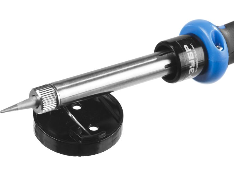 Паяльник c двухкомпонентной рукояткой в наборе с припоем и подставкой, ЗУБР Профессионал 55402-60, 60Вт, конус