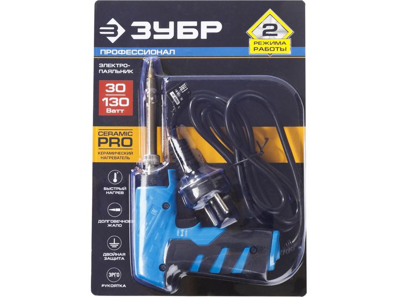 Паяльник ЗУБР ПРОФЕССИОНАЛ ТУРБО , 2 уровня мощности, пистолетная рукоятка, 30Вт и 130Вт, конус