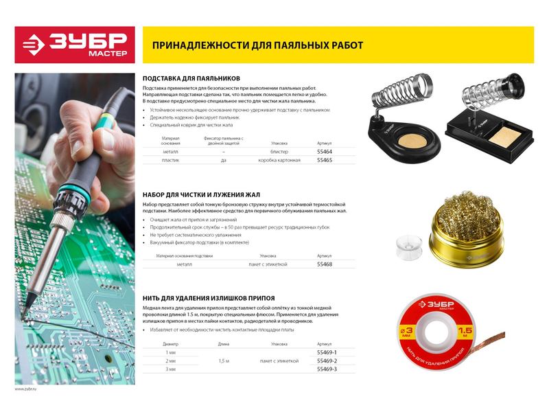Паяльное оборудование ЗУБР изготовлено из высококачественных современных материалов. Профессиональный подход и учет всех тенденций развития рынка обеспечивают высокую надежность и длительный срок службы. оборудования.