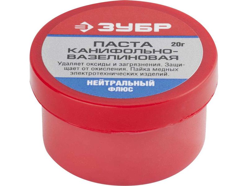 Канифольно-вазелиновая паста Зубр 55475-020 применяется для пайки элементов радиомонтажа и печатных плат легкоплавкими припоями. Хорошо держится на металлических контактах, обеспечивая точное дозирование и высокую скорость нанесения на большое количество мест паек.