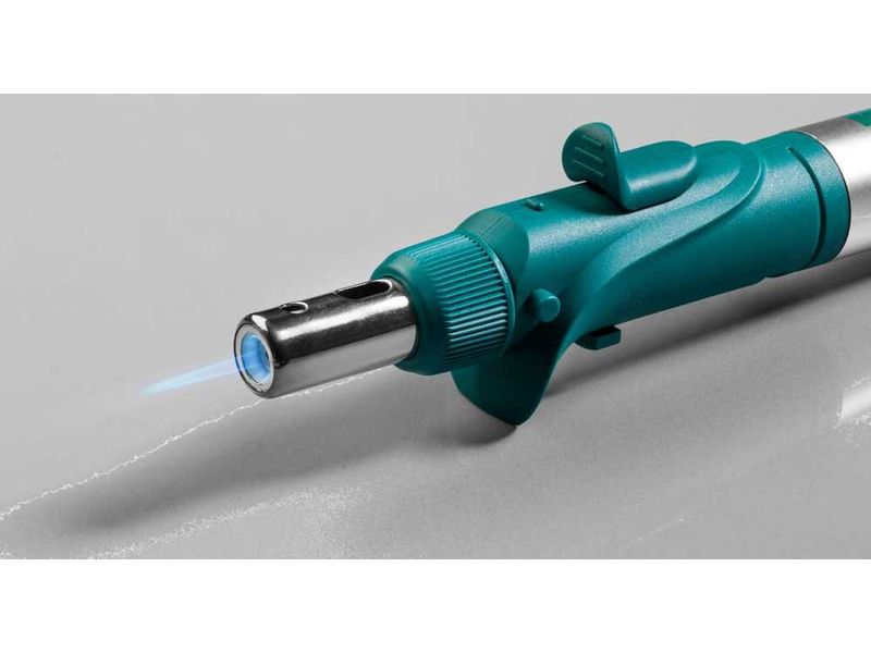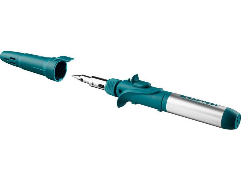 Газовый паяльник представляет собой горелку с набором насадок. Предназначен для плавки и сварки пластиковых частей, нагрева малых металлических частей и плавки металла с низкой температурой плавления, ремонта ювелирных изделий, сгибания тонких стеклянных трубок, пайки медных трубок, сварки электронных и электротехнических элементов, где очень важна точность и надежность. Изделие обладает возможностью выбора температурного режима, что позволяет максимально соответствовать требованиям любой работы. Этот легкий в обращении инструмент, работающий на бутане. Универсальная горелка имеет встроенный клапан для заправки. Заправляется от баллона с бутаном для газовых зажигалок. Создает устойчивое пламя температурой до 1300 °С.