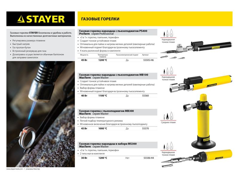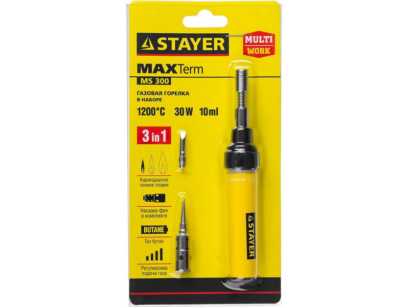 Газовая горелка предназначена для плавки и сварки пластиковых частей, нагрева малых металлических частей и плавки металла с низкой температурой плавления, ремонта ювелирных изделий, сгибания тонких стеклянных трубок, пайки медных трубок, сварки электронных и электротехнических элементов, где очень важна точность и надежность. Изделие обладает возможностью выбора температурного режима, что позволяет максимально соответствовать требованиям любой работы. Этот легкий в обращении инструмент, работающий на бутане. Универсальная горелка имеет встроенный клапан для заправки. Заправляется от баллона с бутаном для газовых зажигалок. Создает устойчивое пламя температурой до 1300 °С.
