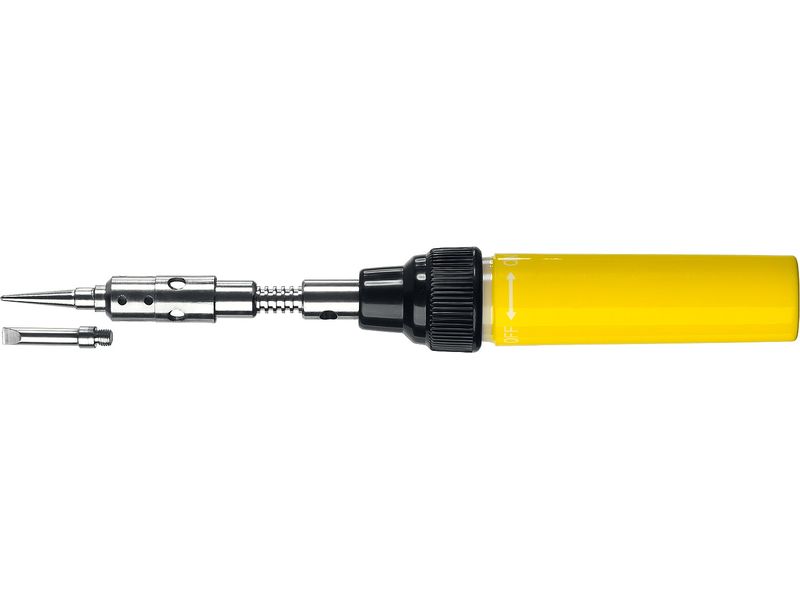 Паяльник газовый поставляется с 2-я сменными насадками. Он обладает возможностью выбора температурного режима, что позволяет максимально соответствовать требованиям любой работы. Идеально подходит для пайки, выжигания, лужения, прогрева и многих других работ. •Легкий подбор температурного режима, •Быстрый нагрев и перезарядка, •Мгновеное включение, •Многофункциональностьность: один инструмент. множество возможностей. •Работает на жидком газе бутане: Газовая микрогорелка может использоваться при работах с ювелирными изделиями, и особо мелкими деталями. Прочный алюминиевый корпус.