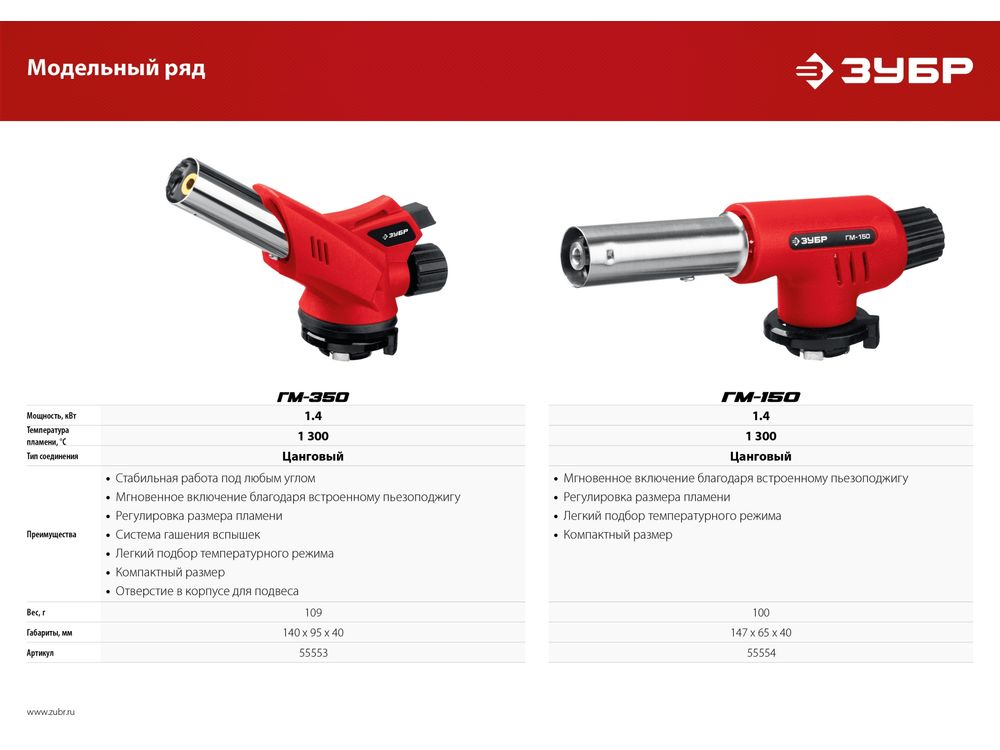 Купить ЗУБР ГМ-350, газовая горелка с пъезоподжигом, на баллон, цанговое соединение, 1300°C