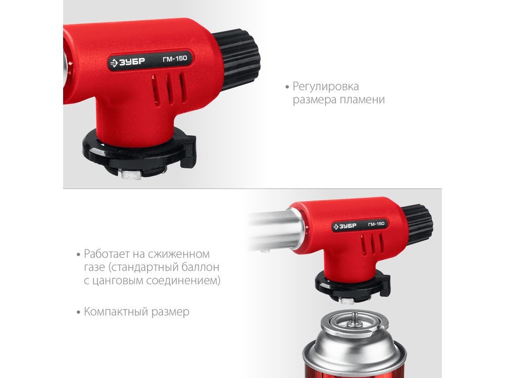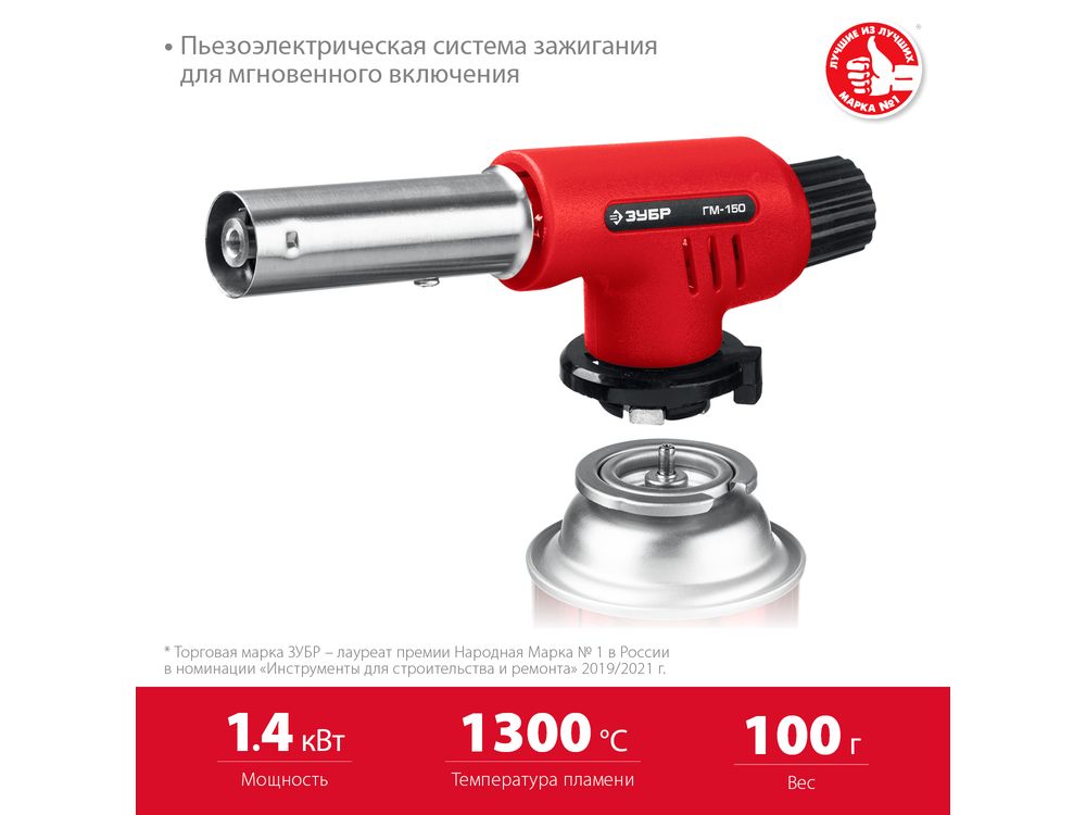 ЗУБР ГМ-150, газовая горелка с пъезоподжигом, на баллон, цанговое соединение, 1300°C