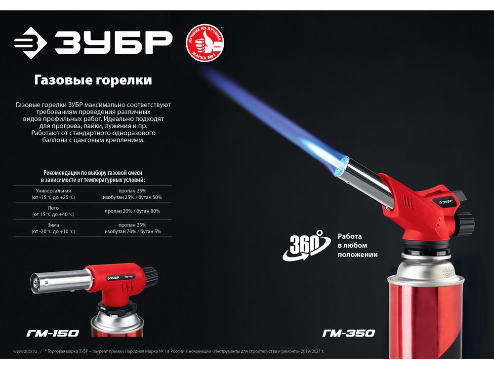 Купить ЗУБР ГМ-150, газовая горелка с пъезоподжигом, на баллон, цанговое соединение, 1300°C