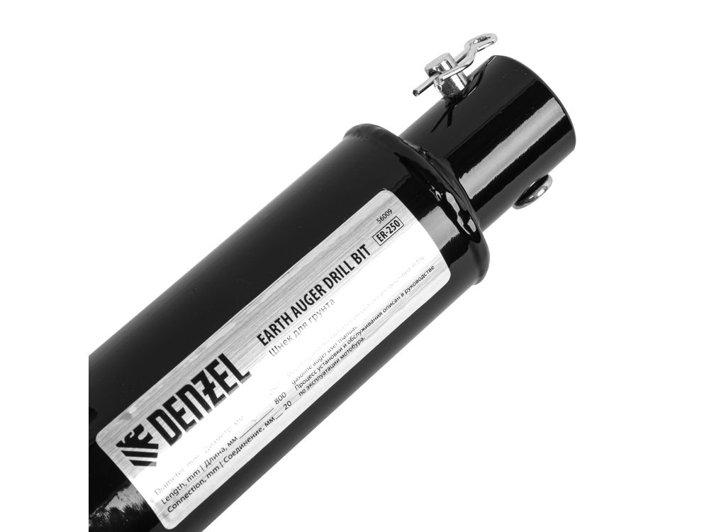 Шнек для грунта Denzel ER-250 56009 длиной 800 мм с диаметром соединения 20 мм, со съемным ножом, устанавливается на мотобур и используется для бурения отверстий диаметром 250 мм. Инструмент пригодится для установки столбчатых опор, формирования лунок для посадки растений и бурения отверстий в грунте различной плотности при выполнении других задач.