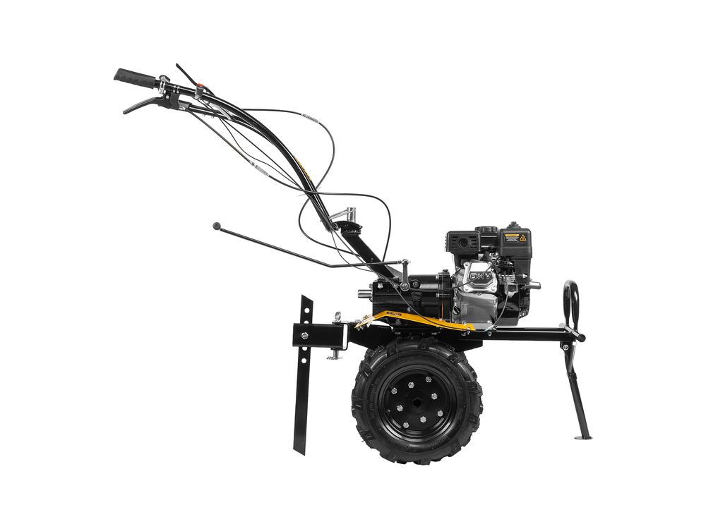 Мотоблок Denzel DPT-270X 56433 с двигателем объемом 212 см3 и мощностью 7 л.с., дисковым сцеплением, валом отбора мощности (ВОМ) и коробкой передач 2В/1Н используется для проведения различных сельскохозяйственных работ. Удобен для обработки участков большой площади: в комплект поставки входит 6 рядов высокопрочных фрез, обеспечивающих ширину 90 см и глубину вспахивания 35 см. ,Возможность установки различного навесного оборудования, в том числе активного, значительно расширяет возможности мотоблока и позволяет снизить расходы на приобретение сельскохозяйственной техники. Техника совместима с удлинителями осей 59903, 59909, универсальной сцепкой 59904 и 59910, плугами 59905, 59911, окучниками 59906, 59912, 59907, картофелевыкапывателями 59908, 59913, грунтозацепами 59914, 59915, 59916, 59901, 59917, 59902. Установив прицеп Denzel 59950, мотоблок можно использовать в качестве транспортного средства.