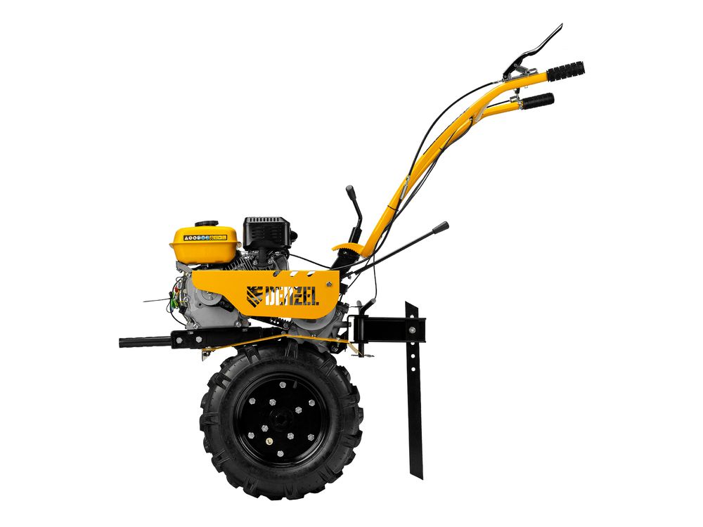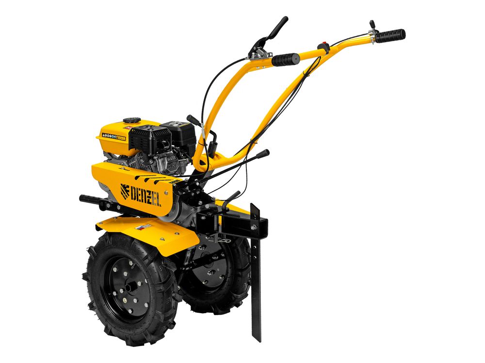 Мотоблок Denzel DPT-170S 56441 с двигателем мощностью 7 л. с., ременным механизмом сцепления, фрезами 3 х 4, шкивом отбора мощности (ШОМ) и коробкой передач 2В/1Н предназначен для проведения сельскохозяйственных работ. Максимальная ширина обработки составляет 1000 мм, глубина — 350 мм. Фрезы собираются из двух двойных и двух одинарных секций, что позволяет регулировать ширину вспашки. ,Шкив отбора мощности и универсальный кронштейн диаметром 30 мм позволяют установить любое навесное оборудование Denzel, например. плуг, окучник, картофелевыкапыватель. Такое решение значительно расширяет возможности мотоблока и позволяет минимизировать расходы на закупку сельскохозяйственной техники.