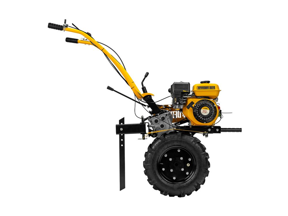 Эффективная работа — благодаря усиленному шестеренчато-цепному редуктору с алюминиевым корпусом мотоблок успешно справляется даже с плотным, глинистым грунтом.