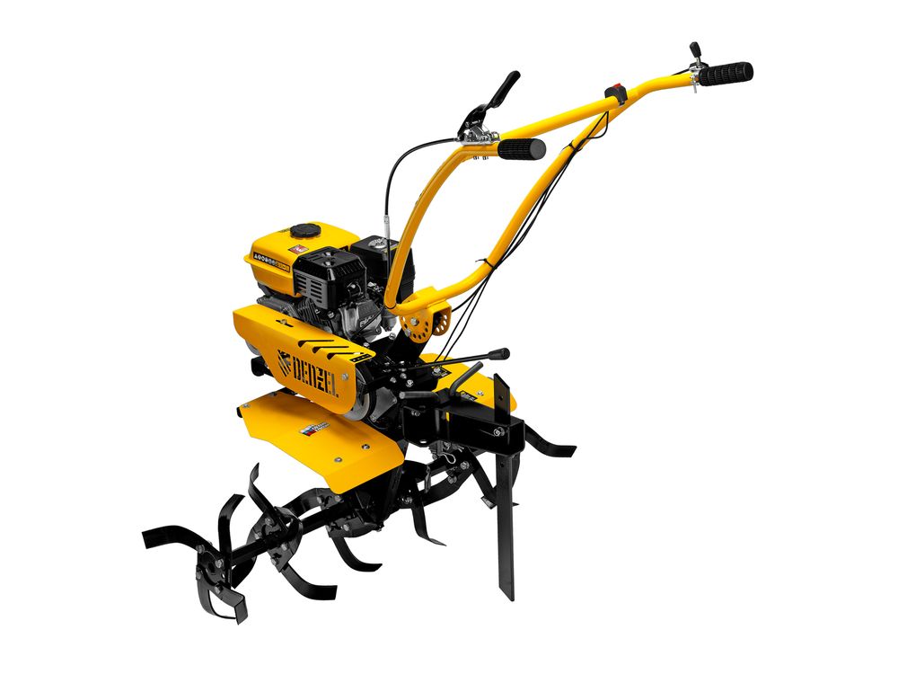 Мотоблок Denzel DPT-270SB 56452 мощностью 7 л.с., с ременным механизмом сцепления, оснащен фрезами 3 х 4, шкивом отбора мощности (ШОМ) и коробкой передач 2В/1Н. Предназначен для выполнения земляных работ: рыхления, вспахивания, прополки и т. д. Успешно справляется даже с плотной, глинистой почвой. Разборные фрезы с дополнительными секциями позволяют регулировать ширину обработки до 1 м.,Чугунный шестеренчато-цепной редуктор позволяет работать длительное время с большими нагрузками, шкив отбора мощности и кронштейн диаметром 30 мм позволяют подключать активное навесное оборудование. При помощи универсальной сцепки мотоблок агрегатируется с различным навесным оборудованием Denzel: плугом, окучником, картофелевыкапывателем (совместимые артикулы 59905, 59911, 59906, 59907, 59912, 59908, 59913). Тем самым можно сократить расходы на приобретение сельскохозяйственной техники. Повысить проходимость можно при помощи грунтозацепов 59901, 59914, 59915, 59916, 59917. Установка прицепа Denzel 59950 позволяет использовать мотоблок для перемещения по участку и транспортировки грузов.