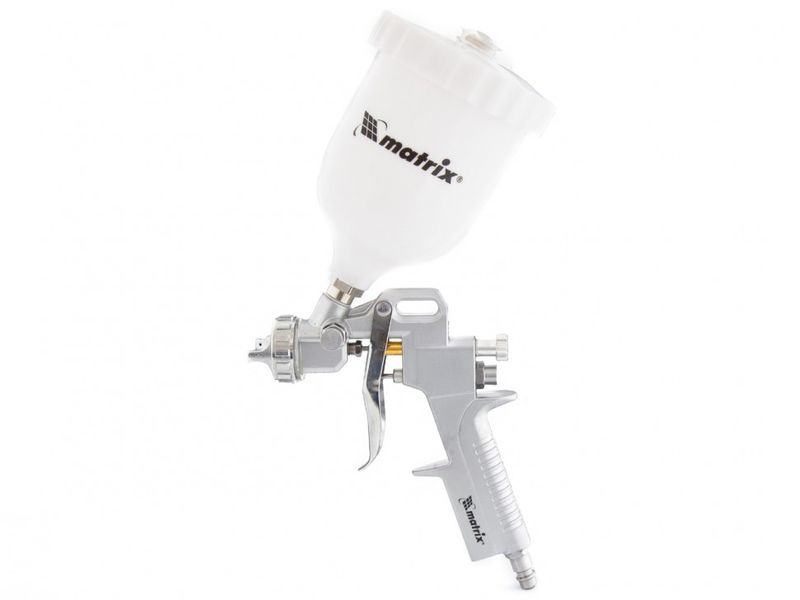 Контроль количества краски — бак краскораспылителя выполнен из прозрачного пластика, а благодаря верхнему расположению его удобно заправлять.