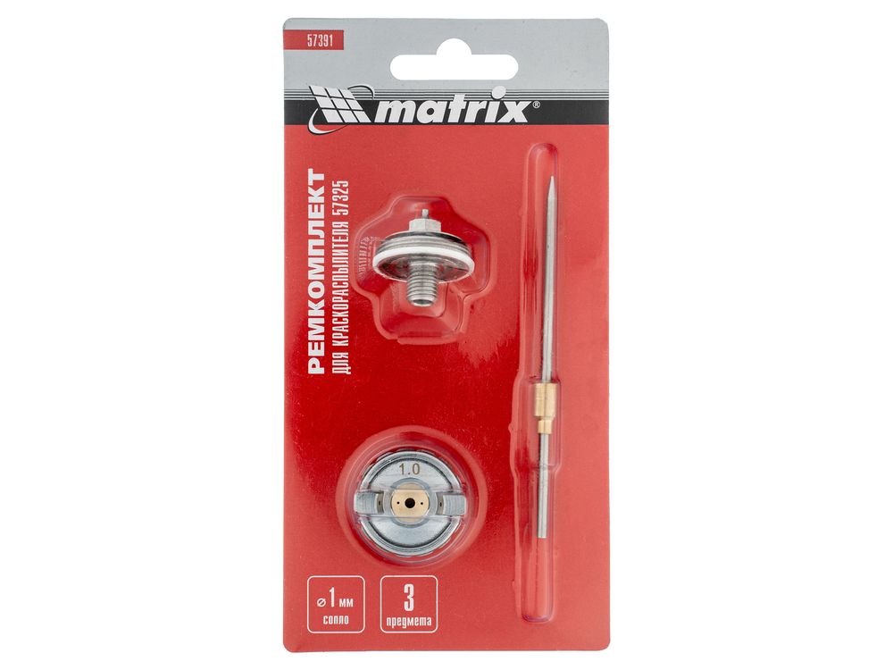 Комплект Matrix 57391 для краскораспылителя Matrix 57325 включает в себя 3 предмета: сопло диаметром 1 мм, иглу и форсунку. Их можно использовать для ремонта инструмента или расширения его функциональных возможностей.