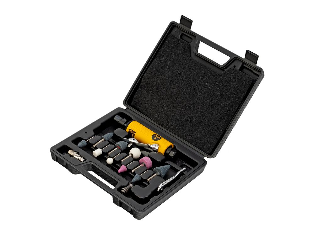 Прямая пневмошлифмашина Denzel PGS25000 57464 поставляется с 10 шлифовальными камнями и цангами 3 и 6 мм, потребляет 113 л сжатого воздуха в минуту и обеспечивает скорость вращения оснастки 25000 об/мин. Используется для обработки изделий из пластика, древесины и металла. Позволяет удалять заусенцы, зачищать сварные швы, снимать тонкий слой ржавчины или лакокрасочного покрытия на небольших участках, выполнять шлифовальные работы. Инструмент оптимален для работы в условиях ограниченного пространства, подходит для профессионального и бытового использования.