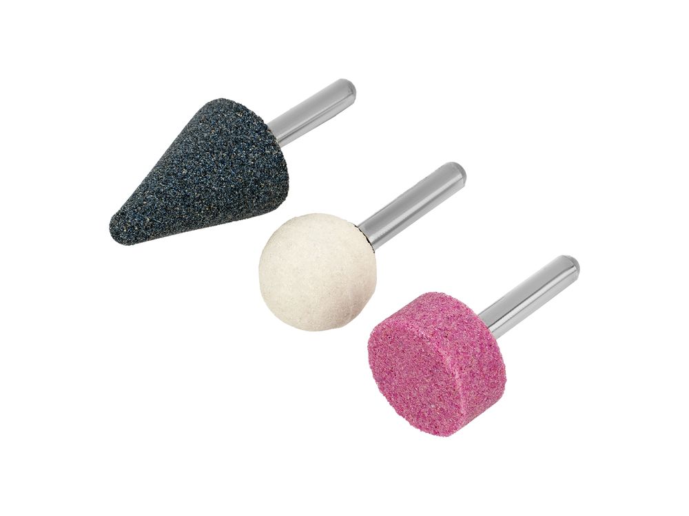 Обработка поверхностей с различным рельефом — в комплект поставки входит 10 шлифовальных камней разной формы.