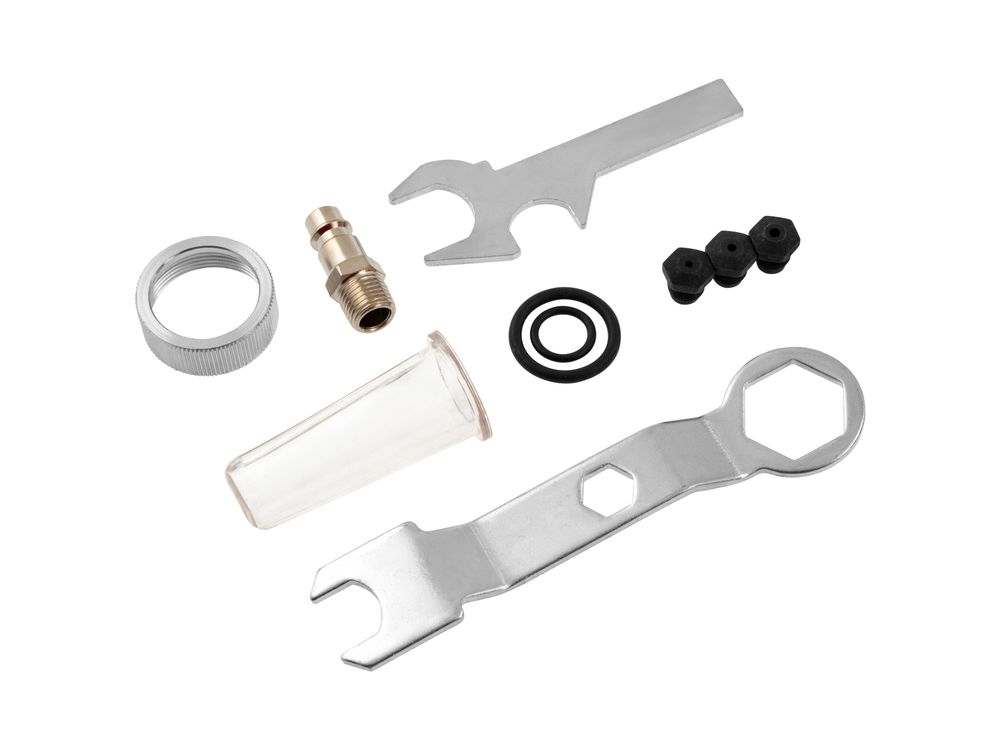 Готовность к работе — к инструменту прилагаются штуцер для подсоединения к компрессору, ключ и набор уплотнений, поэтому использовать его можно сразу после приобретения.
