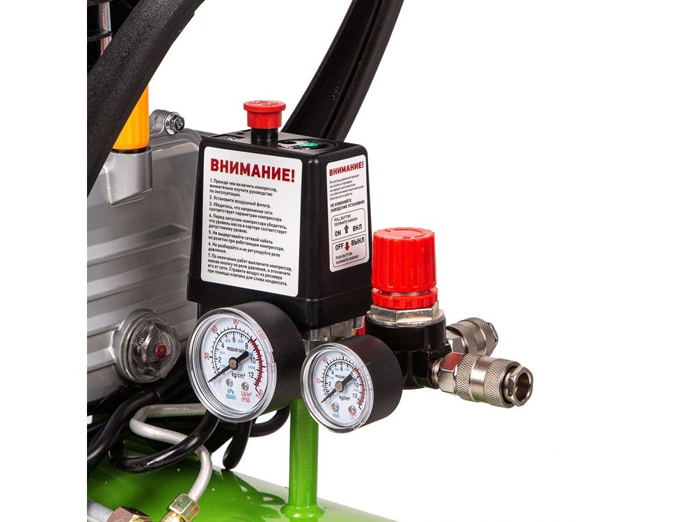 2 манометра: оператор может контролировать давление сжатого воздуха в ресивере и на выходе, и корректировать работу компрессора в зависимости от показаний.