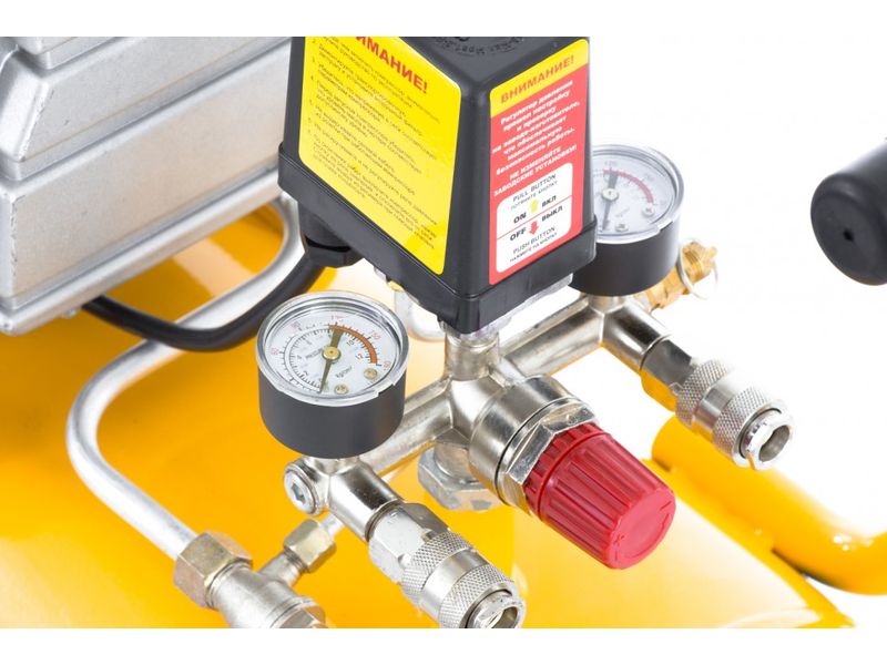 Компрессор пневматический торговой марки DENZEL предназначен для обеспечения сжатым атмосферным воздухом оборудования, аппаратуры и инструмента, применяемого в бытовых целях.Использование компрессора позволяет значительно сэкономить электроэнергию, а также повысить эффективность работы.Компрессор способен производить 206 л/мин сжатого до 8 атм воздуха, который нагнетается в ресивер общим объемом 50 л.Модель часто используется на СТО автомобилей, в загородном доме или подсобном хозяйстве.ОсобенностиНапряжение питания 230 В Двигатель асинхронный однофазный Манометр для контроля давления сжатого воздуха Реле давления, осуществляющим запуск/остановку в зависимости от настроек Защитный клапан Простота и удобство перемещенияПреимуществаЭффективная система смазки Защита от перегрева Защита от перегрузки Предохранительный клапан высокого давления Коннекторы для быстрого подключения пневмоинструмента Rapid (Евро) Резиновые опоры для снижения вибрацииКомплектностьКомпрессор воздушный – 1 шт. Колесо с крепежом – 2 шт. Комплект виброопоры с крепежом – 1 шт. Воздушный фильтр – 1 шт. Сапун – 1 шт. Руководство по эксплуатации – 1 шт. Гарантийный талон – 1 шт.